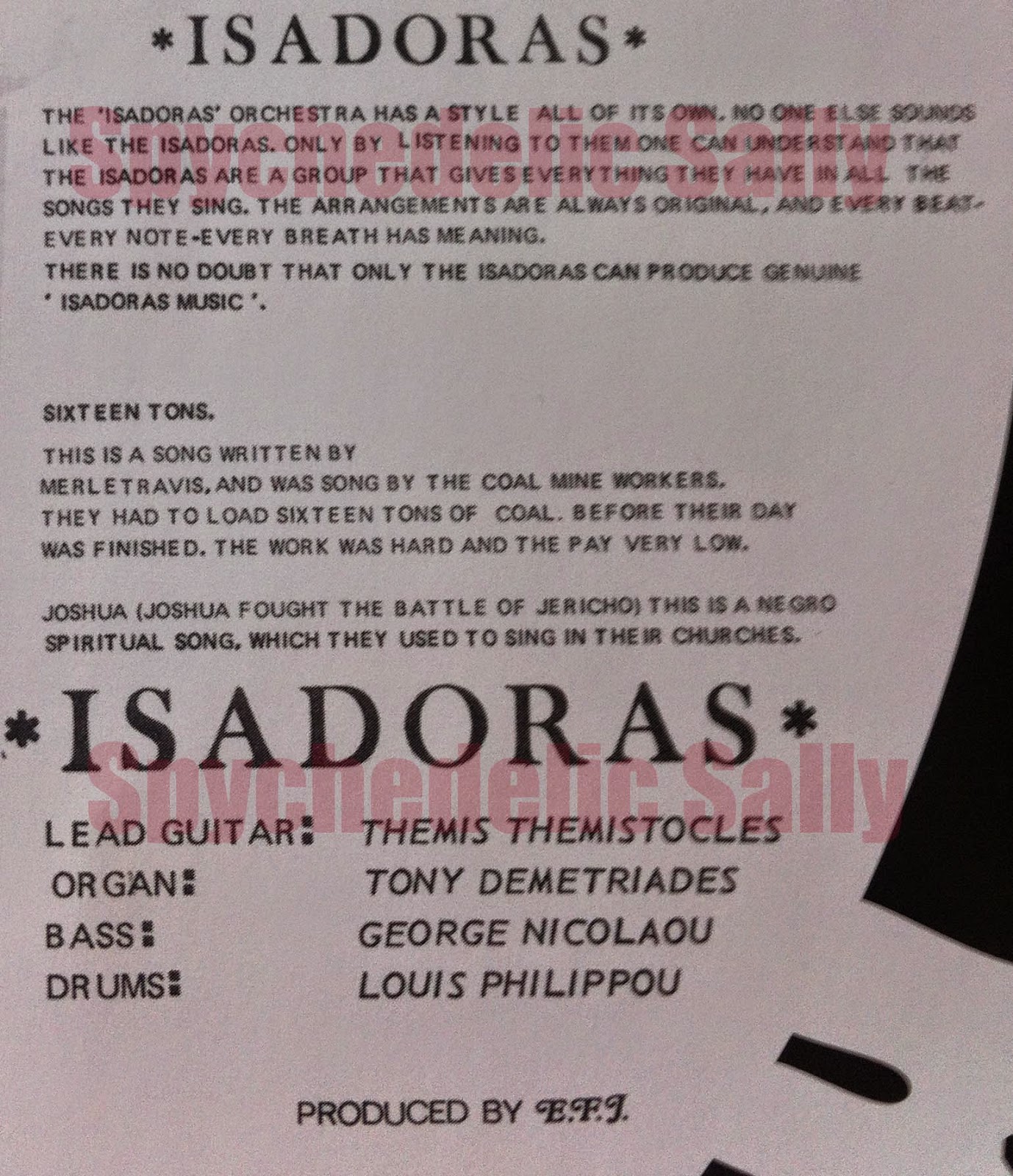 πάνω σε ένα ωραίο κείμενο της B-Othesiderecords απ όπου και το αναδημοσιεύω με μια μικρή διόρθωση στα κομμάτια "Sixteen Tons" (πρωτοτραγούδισε ο Merle Travis το 1946 και ακολούθησαν δεκάδες ακόμα τραγουδιστές διασκευάζοντας το) και το "Joshua" το οποιο προκειται για ενα spiritual τραγουδισμενο απ τους Churches.